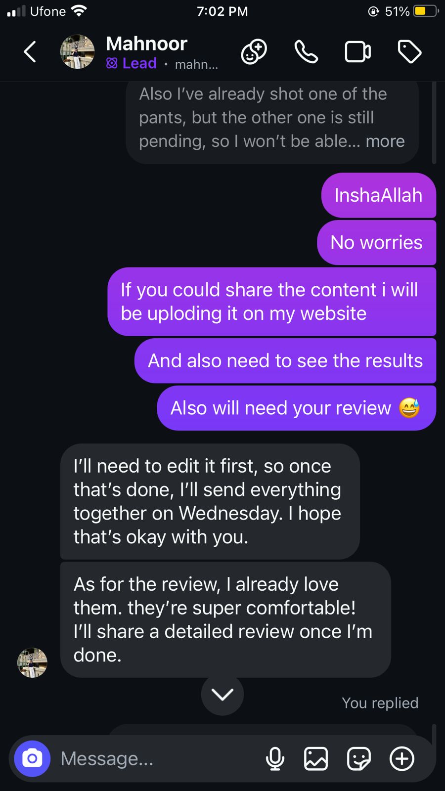 "Kapron ke colors bilkul waisay hi niklay jaise website pe thay. Quality bhi top notch hai!"